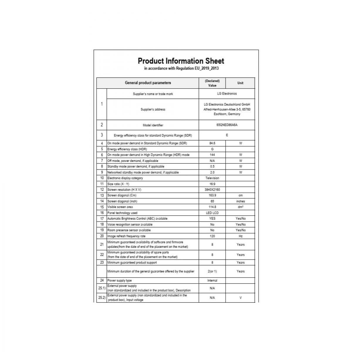 - Enerji Sınıfı: E (SDR), G (HDR)